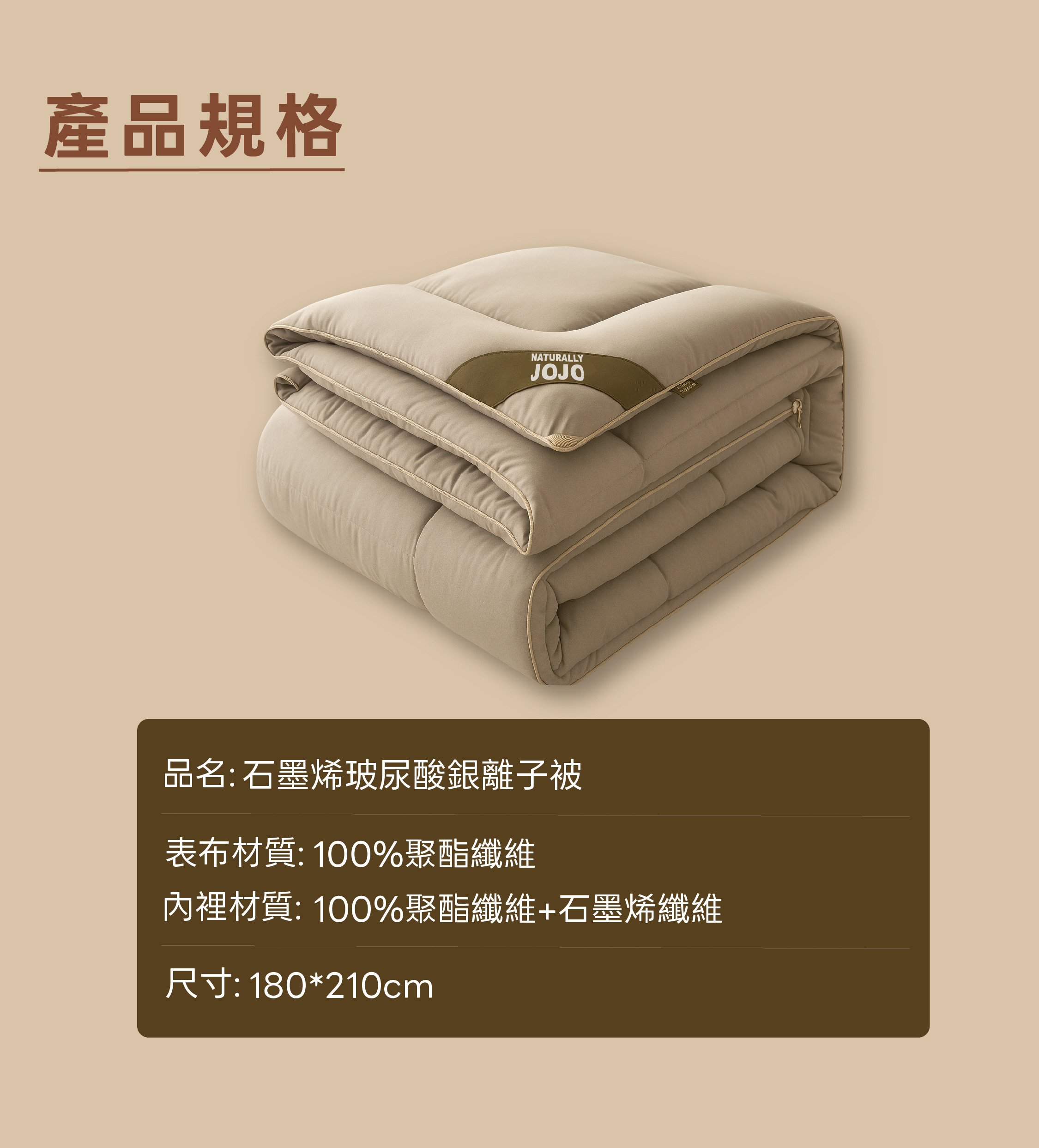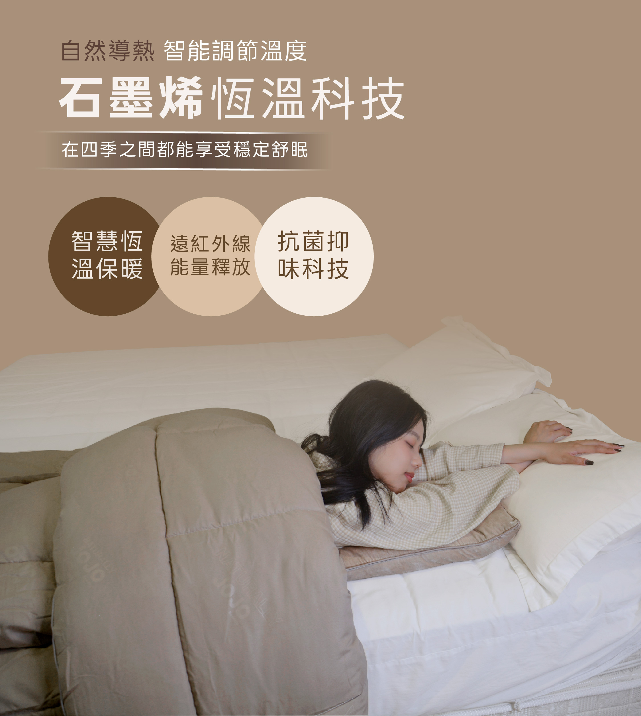 選用石墨烯等優異材質,精品寢具織標配件顏選素材、品質保證。