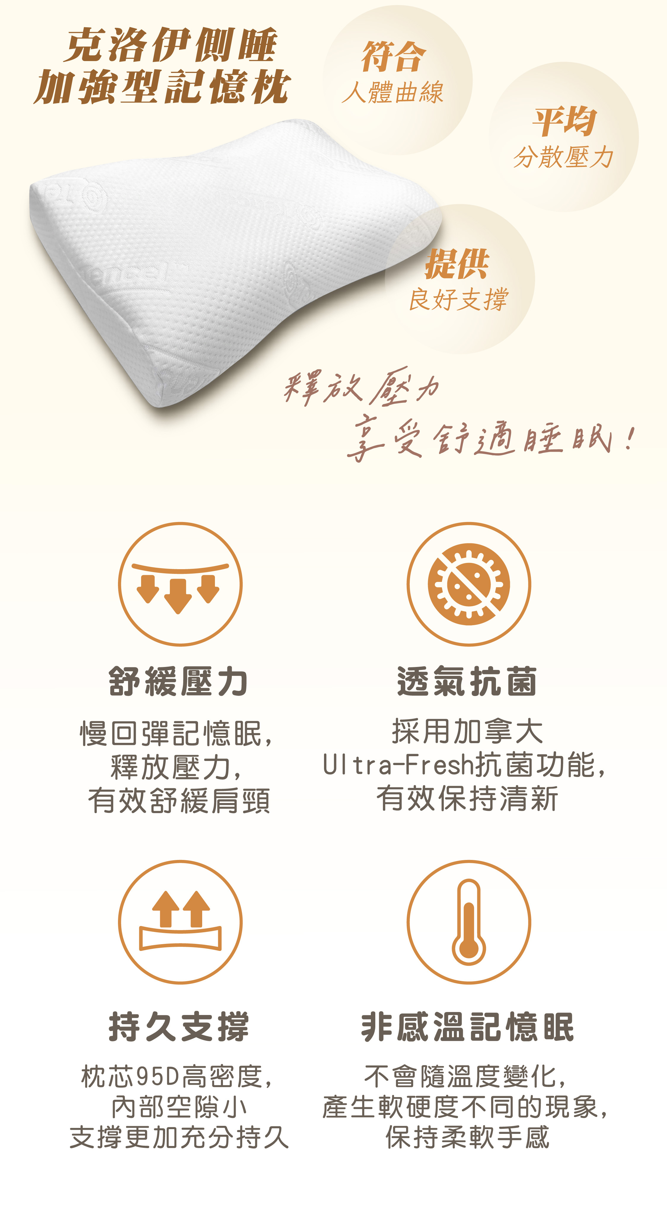 專為習慣側睡使用者設計,側睡紓壓記憶枕的人體工學分區設計,