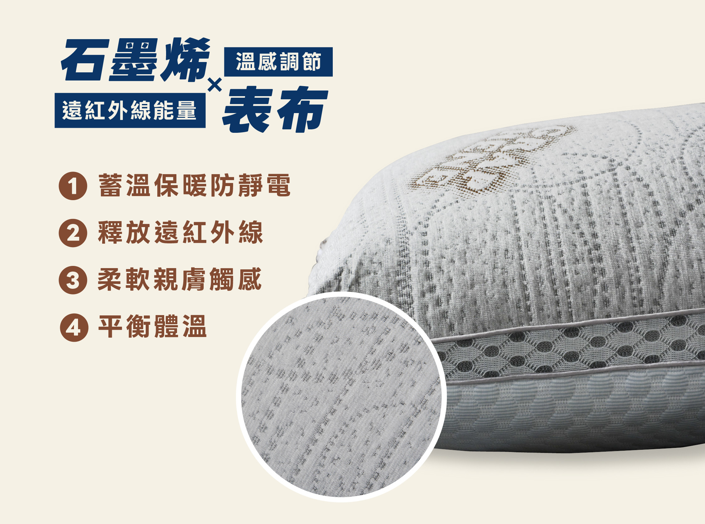 | 材質-表布 | 上層:100%聚酯纖維(35%石墨烯纖維+2%導電紗+63%聚酯纖維) |