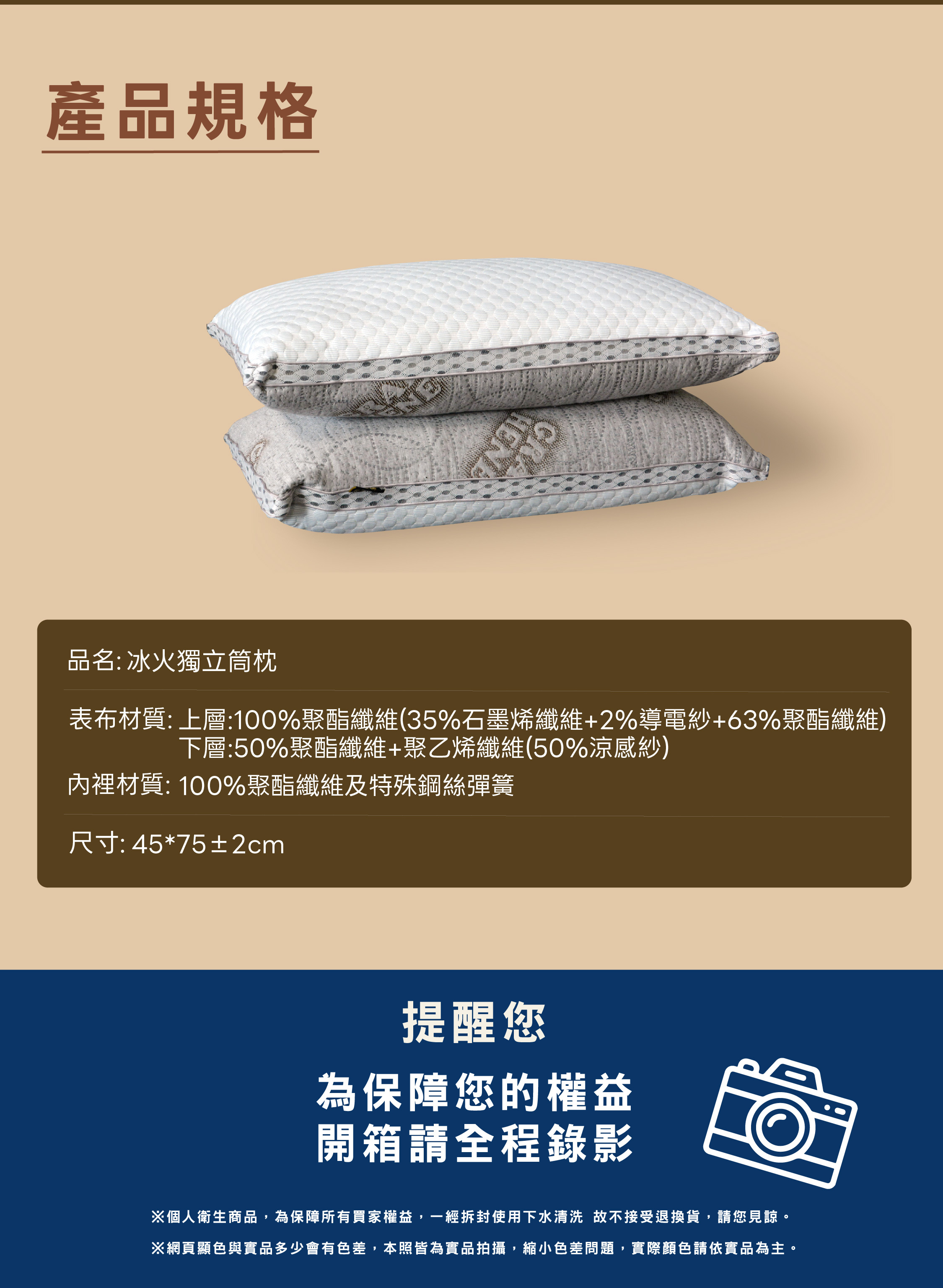 | 材質-內裡 | 100%聚酯纖維及特殊鋼絲彈簧 |